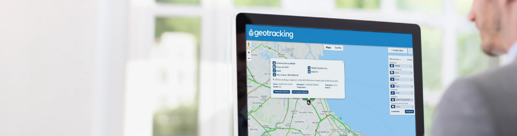 Nuestro sistema de tracking registra ubicación, eventos de apertura, movimiento, detenciones y desvíos de ruta, todo integrado en una plataforma accesible desde cualquier dispositivo.
